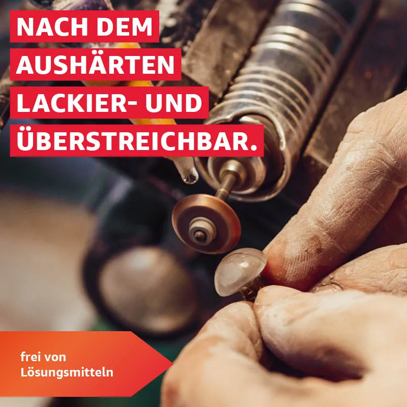 - Transparentes Aushärten: Der 2-Komponenten-Kleber härtet transparent aus und sorgt so für nahezu unsichtbare, ästhetische Verklebungen.