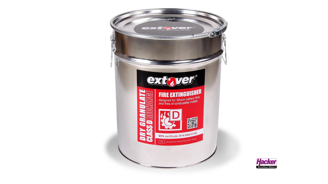 Extover® – Brandschutz Feuerlöschgranulat für Lithium Akkus in Metalleimer 30 Liter