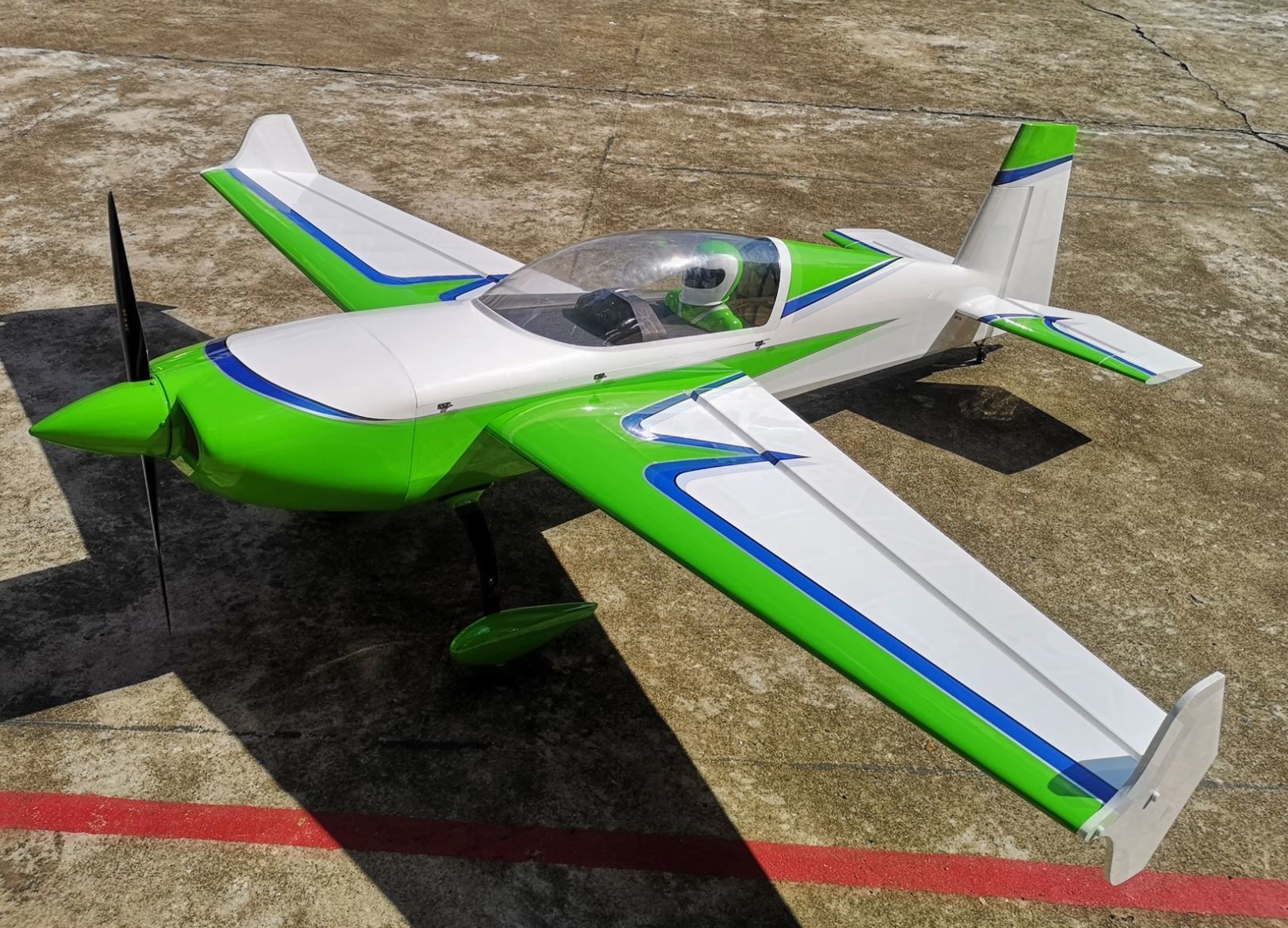 Jetzt ist das 91" Extra zurück und es ist besser als je zuvor! Das Extra v2 verfügt über die neuesten Updates mit umfassender Verwendung von Verbundwerkstoffen, die die Flugzeugzelle leichter und stärker machen, eine breitere Motorhaube, um die meisten Marken von 70-76-ccm-Zweizylindermotoren vollständig zu umschließen, Oberflächen klappbar und versiegelt zusammen mit Schnellspannflügel, Leitwerk und Baldachin.