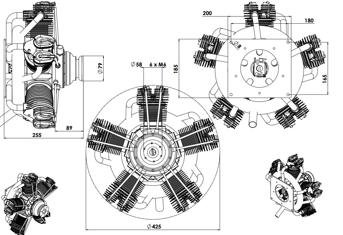 - Fiala 4-Takt Benzin Sternmotor 420ccm