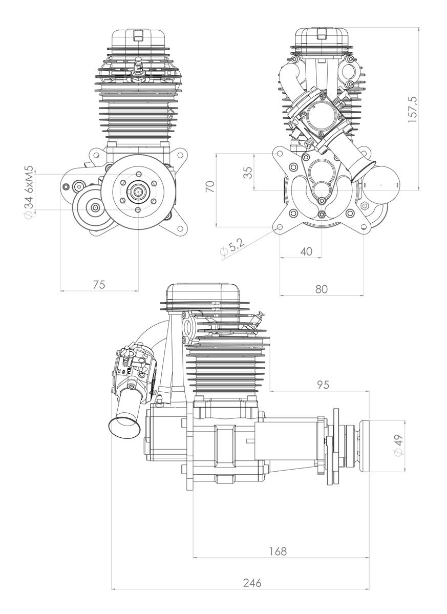 Durch die kompakte Größe, das geringe Gewicht und die Leistungsfähigkeit dieses Motors in Kombination mit dem packenden 4-Takt Sound ist der FM60 perfekt für Scale-Modelle.