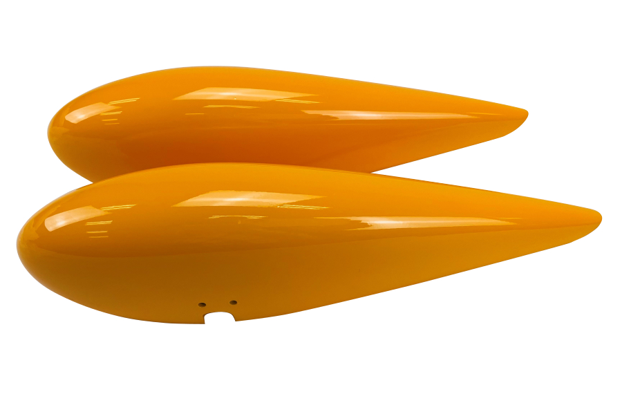 CAP 232EX 70cc Fiberglass Wheel Hose Set (links und rechts) mit Montage-Hardware. Nach gelbem Schema bemalt.