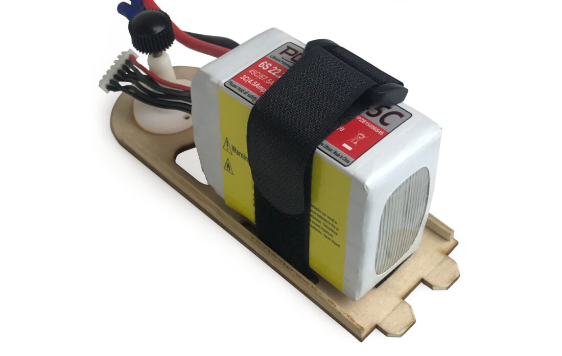 Mamba 10 G2 Batteriefach. Durch den Kauf zusätzlicher Fächer können Sie Ihre Batterien am Fach festgeschnallt lassen und sie bequem in die Mamba 10 G2 ein- und auswechseln!