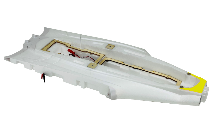 Lackierter Piraña-Rumpf ohne Abziehbilder und ohne Sperrholzboden, Holzteile (FPM417009) und Luken.