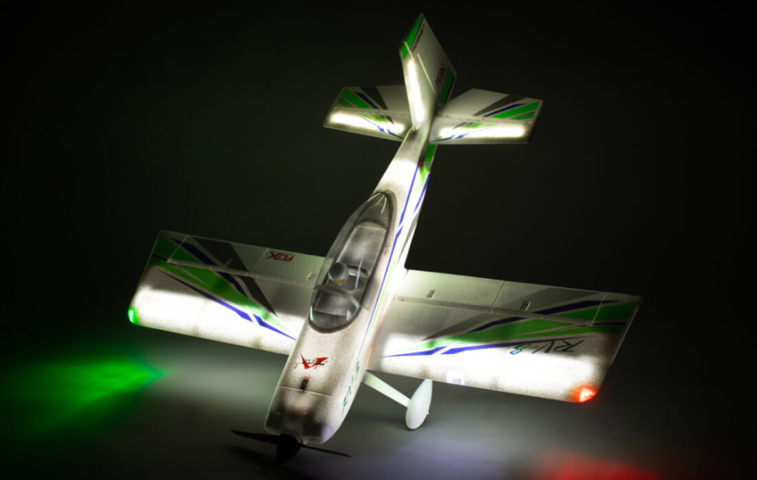 - Die optionale Nachtversion umfasst intern montierte LEDs in den Tragflächen, im Rumpf und in den Stabilisatoren, um das Flugzeug von innen zu beleuchten