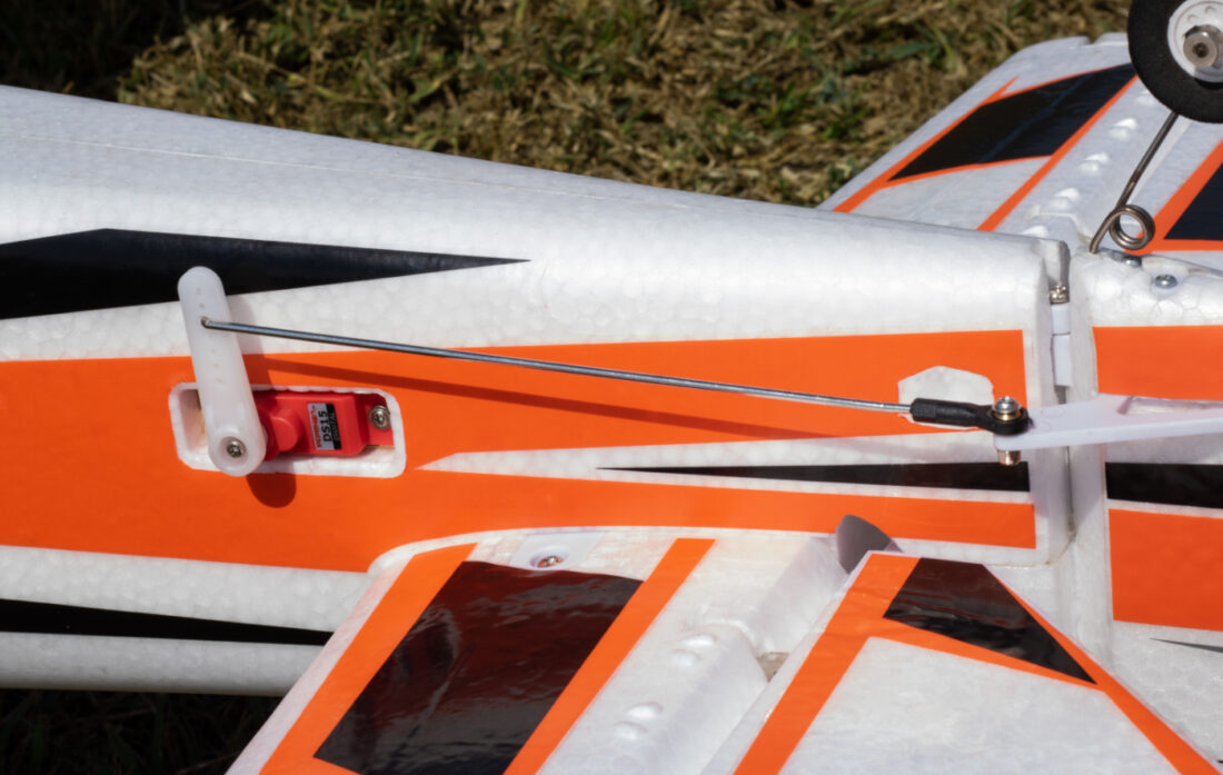 - Sechs DS-15-Servos installiert, mit Höhen- und Seitenruderservos, die für eine präzise Steuerung im Heck montiert sind