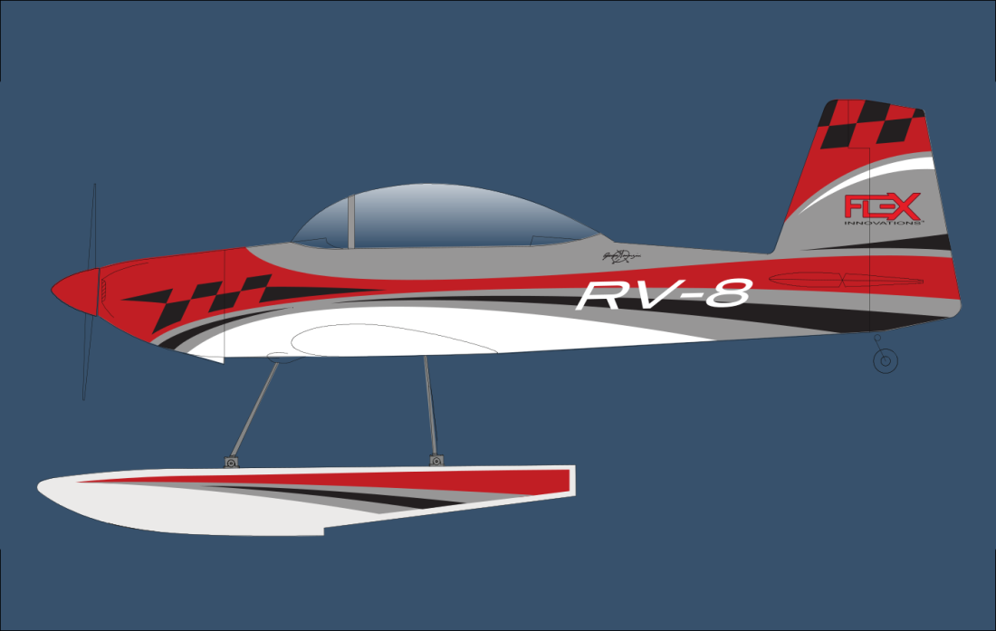 - Die schwimmfähige Flugzeugzelle ermöglicht eine einfache Installation das optionale RV-8 70cc FLS Schwimmerset
