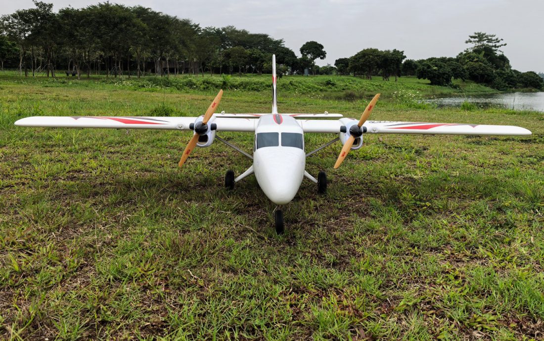 Ein einzelner 6s 5200 mAh – 6200 mAh LiPo-Akku sitzt auf einem abnehmbaren Akkufach und treibt die gegenläufig rotierenden Dualsky 3520C V2 ECO 510KV-Motoren an, die 14-fach schwingen 6 Propeller und sind mit echten 60-Ampere-HobbyWing-Reglern gekoppelt, um ein einfaches und effizientes Antriebssystem zu schaffen. Trotz der enormen Größe der Flugzeugzelle mit einer Flügelspannweite von 90 Zoll lässt sich die Twin Otter 80E mit abnehmbaren Flügeln und Leitwerken schnell und einfach auf- und abbauen und lässt sich in ein viel kleineres und transportables Paket zerlegen. Darüber hinaus können Sie mit den optionalen Flügeltaschen die Flügel schützen, während die Propeller und Spinner angebracht bleiben, was den Auf- und Abbau noch einfacher macht und gleichzeitig vor „Hangarausschlag“ schützt. Der Twin Otter verfügt über eine hohle Innenstruktur und enthält an wichtigen Stellen Sperrholz und Kohlefaser. Die innovativen Unterkonstruktionen aus Sperrholz befestigen BEIDE Antriebssysteme am Flügelrohr, sodass beide Motoren auch bei hoher Leistung reibungslos funktionieren und die Flugzeugzelle bei Taumelmanövern stabil bleibt. Da der Otter EPO-Schaum verwendet, bleibt er robust und reparierbar.