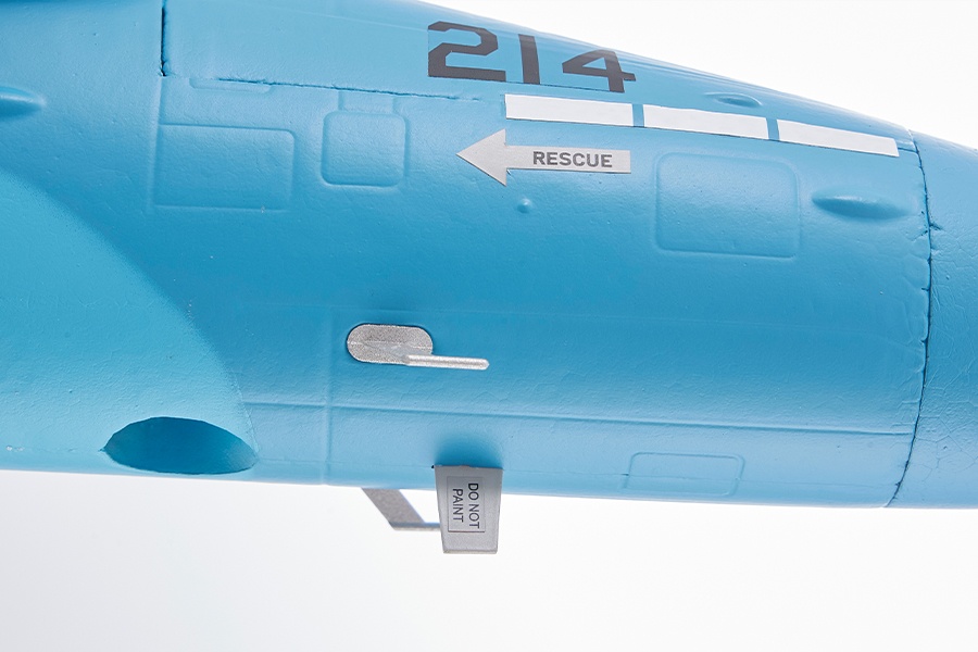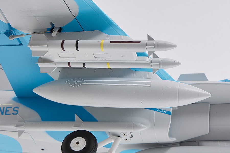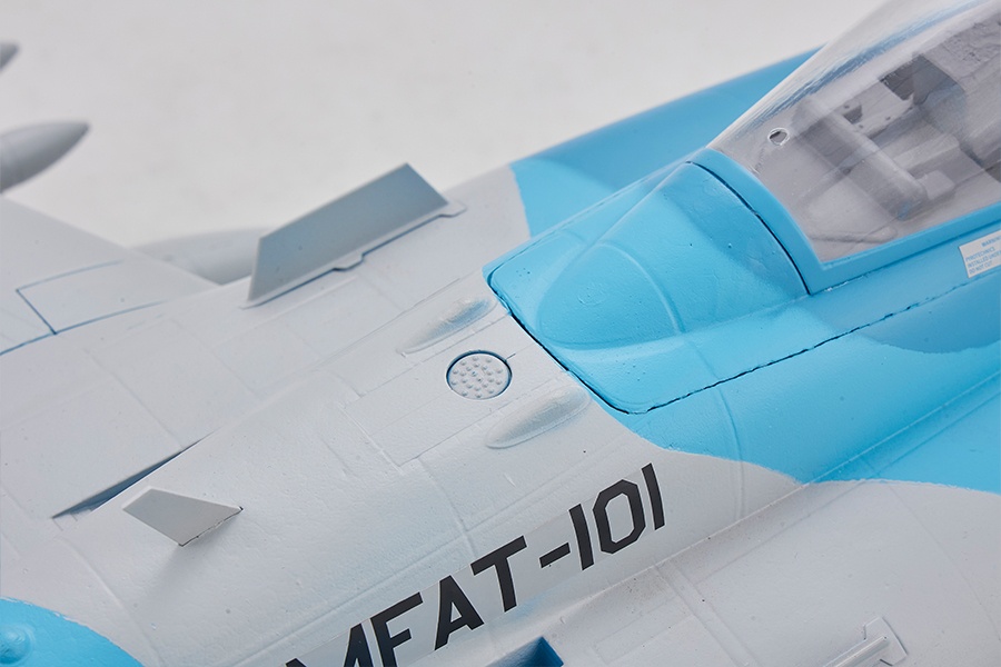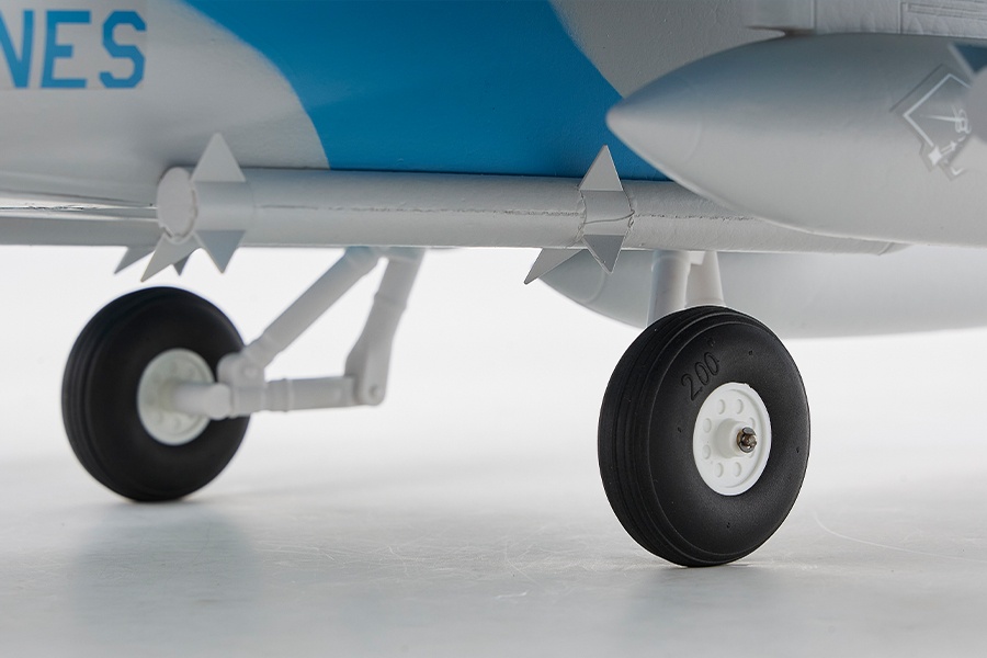 Mit zahlreichen realistischen Details, wie einem maßstabsgetreuen Cockpit, Paneellinien, Antennen, sowie Treibstofftanks und Raketen, überzeugt das Modell durch eine unglaubliche Detailtreue. Die eingebauten Navigationslichter an den Flügelspitzen und am Heck sorgen für eine beeindruckende Atmosphäre während des Fluges. Dank der Verwendung von CNC-gefrästen Fahrwerkskomponenten aus Kunststoff und der robusten Stahl-Drahtkonstruktion des hinteren Fahrwerks, wird nicht nur die optische Authentizität, sondern auch die Funktionalität und Haltbarkeit des Modells gewährleistet.