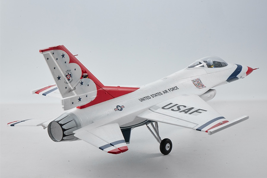 Es sind zwei Lackierungen verfügbar: die Battlefield Gray Lackierung und die Thunderbirds Airshow Lackierung. Die Battlefield Gray Lackierung ist mit realistischen Treibstofftanks und Raketen ausgestattet und enthält fünf verschiedene Sticker-Sets zur individuellen Gestaltung.
