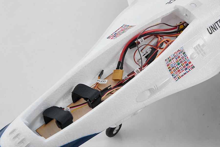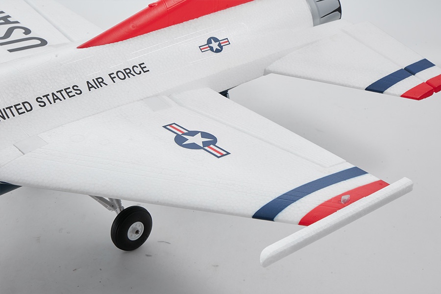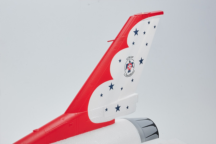 Zusätzlich zu den vorhandenen Steuerungen für Querruder, Bugradlenkung und Höhenruder wurde auch eine Seitenruderkontrolle hinzugefügt, die die Manövrierfähigkeit des Flugzeugs erheblich verbessert und die originalgetreue Nachbildung der meisten Kampfjetmanöver ermöglicht. Der Rumpf, die Flügel, das Höhenleitwerk und das Seitenleitwerk sind alle mit eingebetteten Verstärkungsrohren ausgestattet, um ein Verbiegen oder Verformen während aggressiver Flugmanöver zu verhindern.