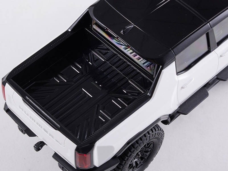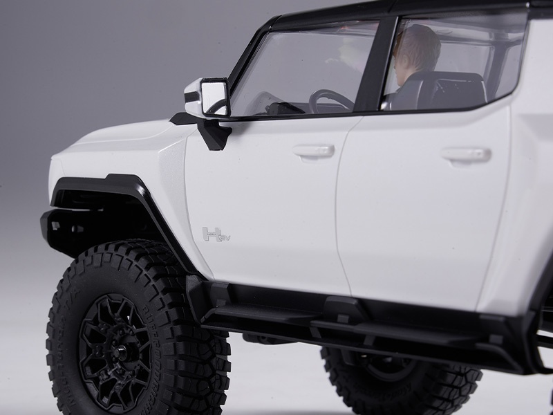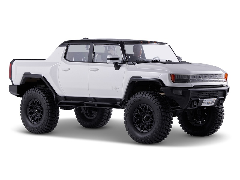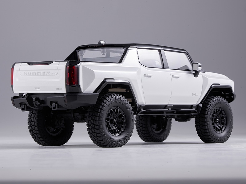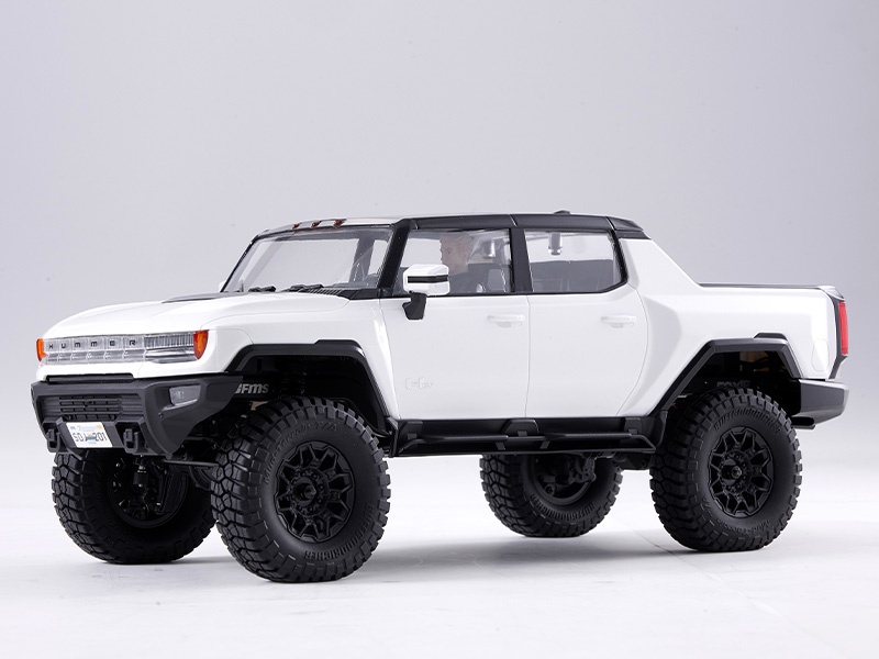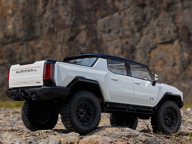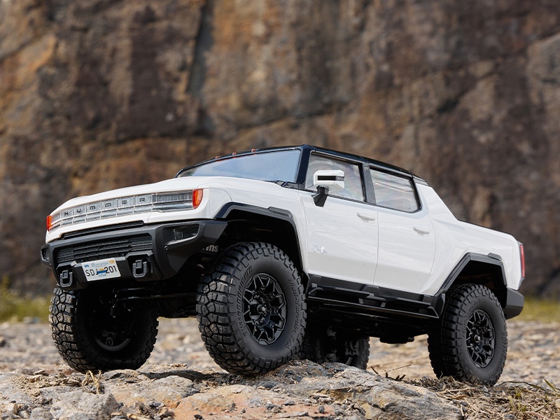 Der FCX18 Hummer EV von FMS ist ein offiziell lizensierter Crawler im Maßstab 1:18. Der Scaler kommt inklusive 2-Gang-Getriebe, eingebauter Elektronik, integrierter Beleuchtung, Fernsteuerung und Akku fahrfertig aus der Box.