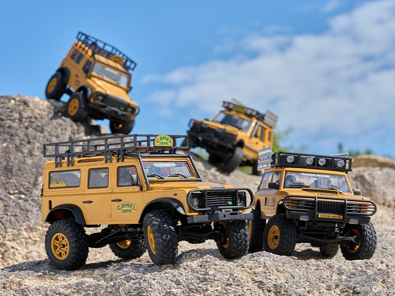 Der FMS FCX24 Land Rover Camel Trophy, offiziell lizenziert von Land Rover verfügt über eine klappbare Hartschalen-Karosserie. Sowohl die vorderen und hinteren Stoßstangen, Kotflügelverbreitungen, Außenspiegel und Türgriffe sind abnehmbar, was z.B. Scale Enthusiasten individuelle Lackierungen vereinfacht. Aus der Camel Trophy sind 4 verschiedenen Fahrzeugtypen erhältlich: