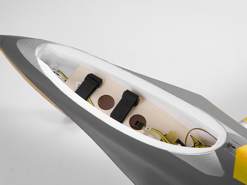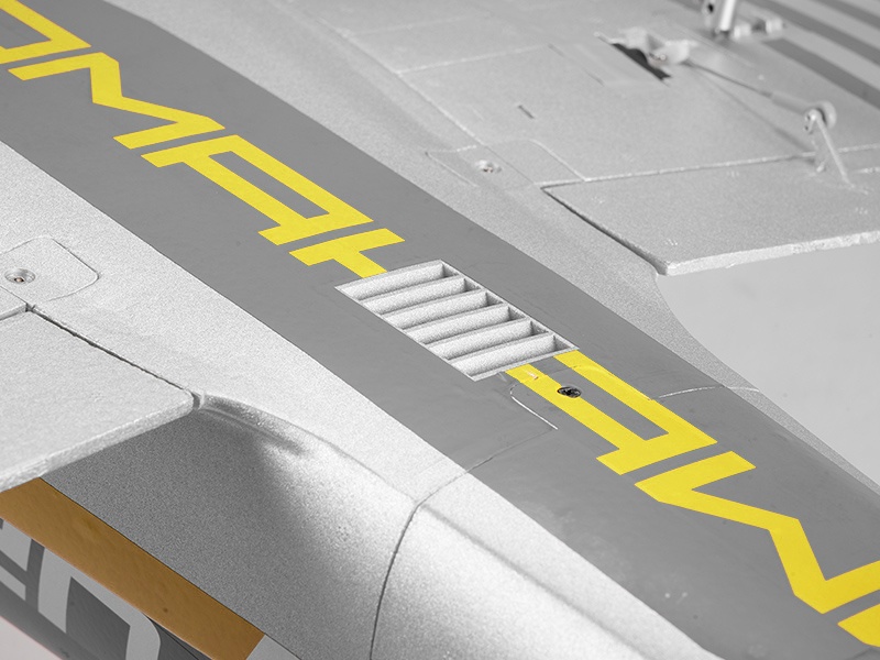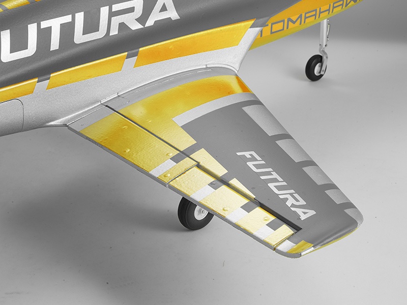 Das Jet Modell ist gefertigt aus extrafestem und besonders leichtem EPO Hartschaummaterial. Die komplette Elektronik wie Motor, Impeller, Regler und 8 präzisen Servos sind bereits fertig im Modell verbaut. Akku rein, Empfänger rein, und die Futura von FMS ist startklar. Sowohl die Tragflächen als auch das Heck sind verstärkt und die Kabinenhaube mit einer Schnalle fest verankert. So können ohne Bedenken aggressive Drehungen, Rollen und Flips ausgeführt werden. Das CNC-Ganzmetallfahrwerk mit Längslenkeraufhängung ist präzise und robust und hält auch harten Landungen stand.