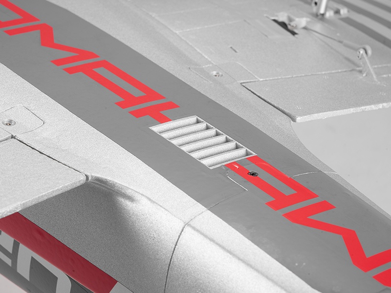 Leichte Konstruktion in PNP Das Jet Modell ist gefertigt aus extrafestem und besonders leichtem EPO Hartschaummaterial. Die komplette Elektronik wie Motor, Impeller, Regler und 8 präzisen Servos sind bereits fertig im Modell verbaut. Akku rein, Empfänger rein, und die Futura von FMS ist startklar. Sowohl die Tragflächen als auch das Heck sind verstärkt und die Kabinenhaube mit einer Schnalle fest verankert. So können ohne Bedenken aggressive Drehungen, Rollen und Flips ausgeführt werden. Das CNC-Ganzmetallfahrwerk mit Längslenkeraufhängung ist präzise und robust und hält auch harten Landungen stand.