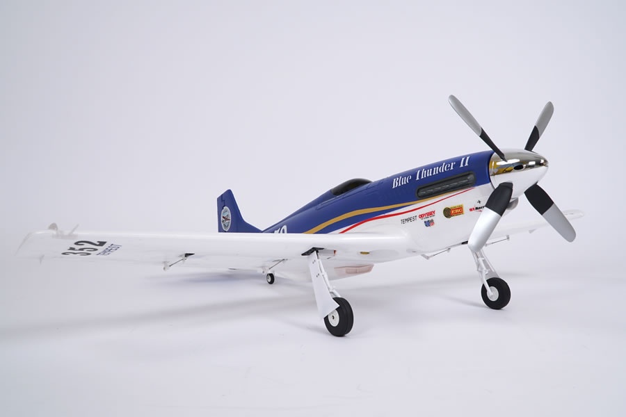 Die P-51 kommt mit zahlreichen maßstabgetreuen Details wie einem realitätsnahen Kippfahrwerk, Lufteinlässen, Funktionsklappen, einem Scale-Vier-Blatt-Propeller und vielen weiteren Scale Details, die das Flugzeug wie das Original aussehen lassen.