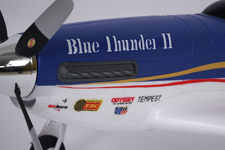Das Modell ist aus EPO Hartschaum gefertigt und kommt mit komplett eingebauter Elektronik flugfertig aus der Box. Motor, Regler, Servos für Quer-, Seiten- und Höhenruder sowie die Landeklappen und das elektronische Einziehfahrwerk sind fertig eingebaut. Es wird lediglich ein passender Akku, der mit bis zu 4.000mAh Platz in dem übergroßen Akkufach findet, und das Fernsteuerungssystem benötigt.