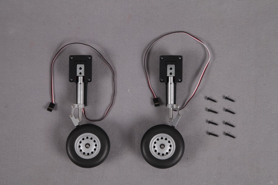 Hauptfahrwerk bestehend aus Räder (2St.), Fahrwerksbeine (2St.) und Einziehmechaniken (2St.) für Super Scorpion.