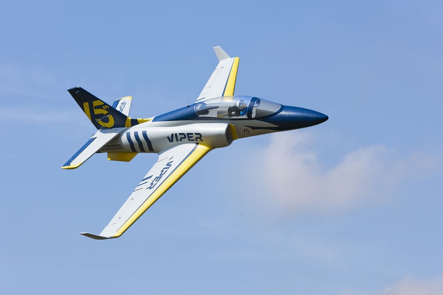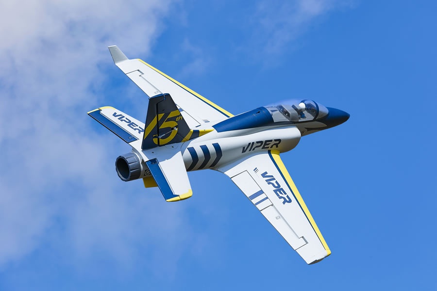 Der neue Viper Jet hat ein marineblaues Scale-Farbschema mit leuchtend gelben Flügelspitzen, wodurch sie aus der Ferne gut zu erkennen ist.