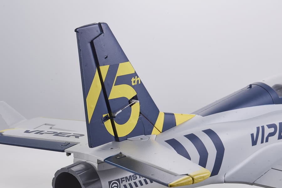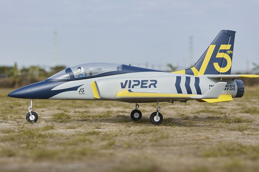 Die 15. Jubiläumsausgabe der FMS Viper wurde auf der Grundlage der Vorgängerversion verbessert, indem das Drahtfahrwerk durch ein stoßdämpfendes CNC-Metallfahrwerk (auch bekannt als “kneeling nose”) ersetzt wurde.