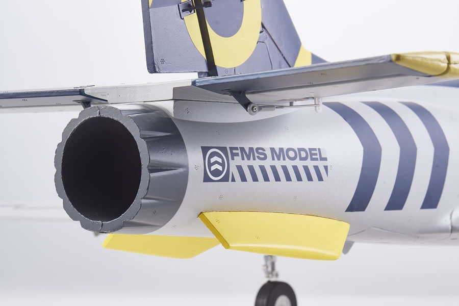 Die 12-Blatt-Impeller-Einheit, der bürstenlose 2860-Hochgeschwindigkeits-Innenläufer und der 70-A-Regler sorgen in Kombination mit dem empfohlenen 6S LiPo-Akku für eine hervorragende vertikale Leistung, einen großen Geschwindigkeitsbereich und eine sofortige Gasannahme im Flug. Vielleicht noch faszinierender ist das Geräusch, das der Antrieb macht – es klingt fast wie eine echte Turbine.