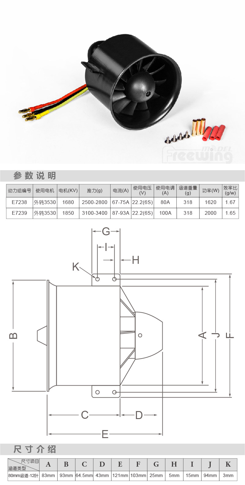 Freewing 80mm 12-Blatt EDF Power System 3530-1850kV Motor für 6s