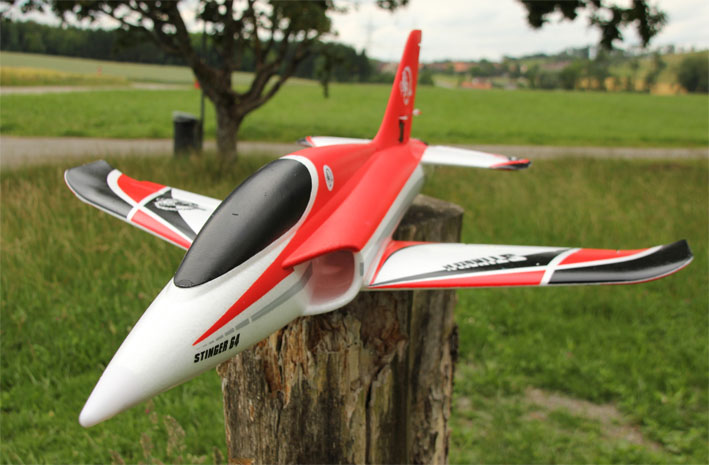 Die Stinger 64 bietet Euch unglaublich viel für Euer Geld: einen super schnellen Jet, der einfach Spass macht und den Ihr überall fliegen könnt, wo es Euch gefällt. Gesteuert über alle 3 Achsen macht er jede mögliche und “unmögliche” Kunstflugfigur mit, ist sehr schnell und agil, dabei gutmütig und klingt auch noch toll. Aggressiv in der Luft, segelt er “fromm wie ein Lamm” zur Landung herein und landet “auf dem Punkt”. Aus EPO gefertigt, ist er gleichermassen stabil wie genügend elastisch, um auch mal eine etwas unsaubere Landung “wegzustecken”. Ein echtes Sahnestückchen zu einem tollen Preis!