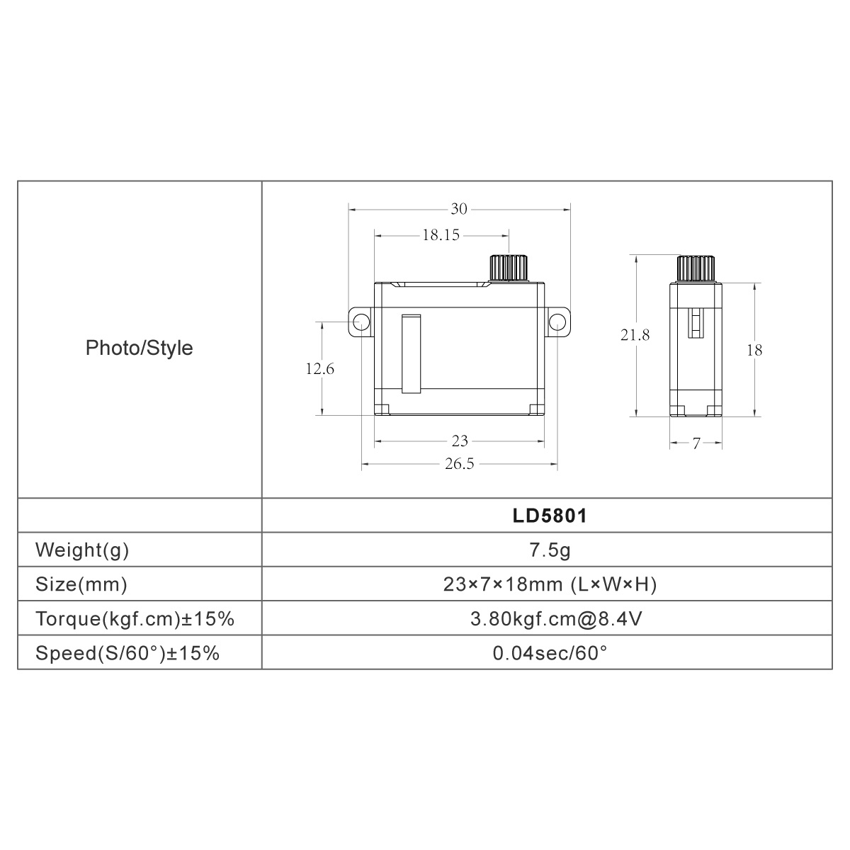 Die Coreless-Servos der Xact-Serie sind mit CNC-gefrästen Aluminium- Gehäusen und einem Metallgetriebe ausgestattet. Die Servos der Xact 5800-Serie können mit Spannungen von 3,5 V bis 8,4 V betrieben werden und bieten hohe Geschwindigkeiten und ein gleichwertiges Drehmoment bei geringerem Profil und Gewicht.