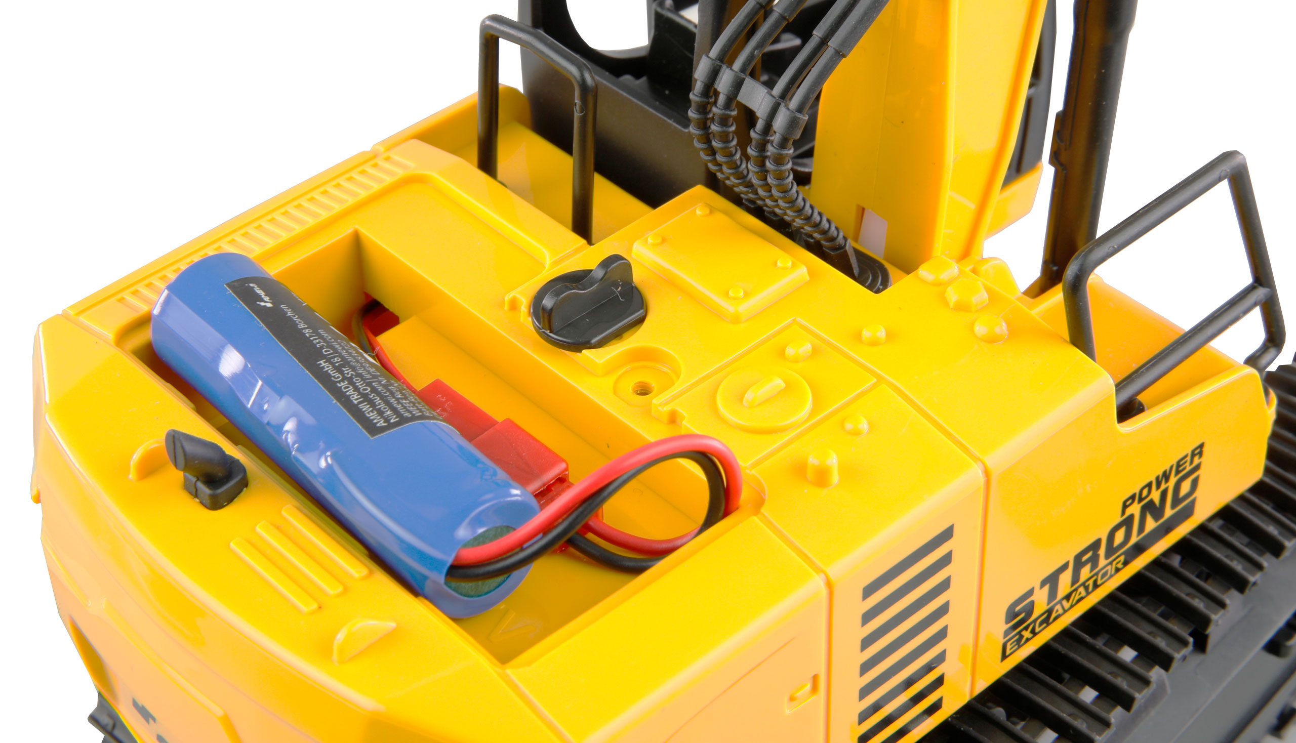 Ferngesteuerte Funktionen: Linke Kette vor/zurück, rechte Kette vor/zurück, Ausleger inkl. Schaufel heben/senken