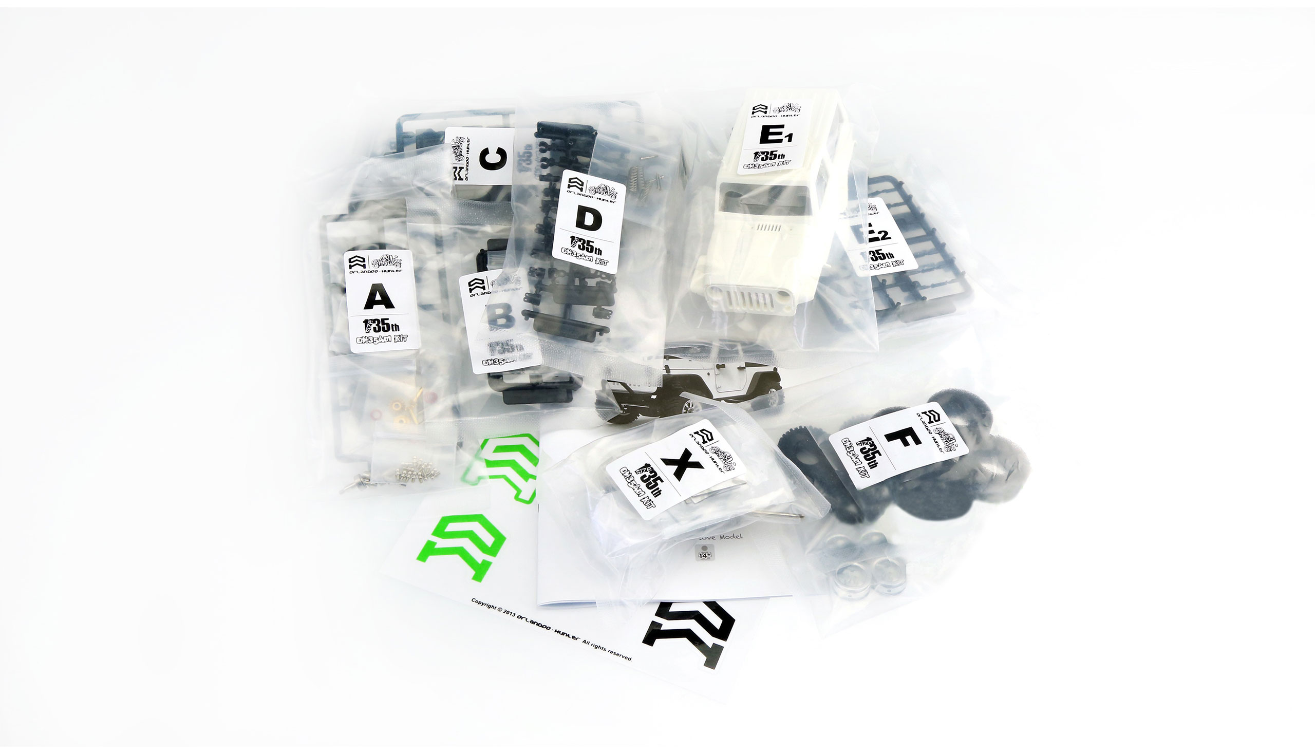 Geländewagen Kit M1:35Hochwertiges Kit eines Geländeswagens im Maßstab 1:35. Echter Modellbau für Liebhaber hochdetaillierter Scaler. Alle Bauteile sind vorgestanzt und vorgefertigt. Der Bausatz wird mit allen elektronischen Komponenten geliefert. Mit dem gut dimensionierten 300kv Motor, dem Regler (ESC), einem digitalen Servo und dem 2S 7,4V Li-Po Akku sind gute Fahreigenschaften garantiert. Zusätzlich verfügt das Fahrzeug über einen Spritzwasserschutz, der auch Outdoor-Anwendungen zu lässt!Features:Hoch detailierte KunststoffkarosserieMicro Größe, ideal für die Nutzung zuhause Permanent AllradantriebSuper softe scale ReifenVoll funktionale Scale AufhängungReibungsdämpferTechnische Daten:LxBxH: 126 x 57 x 63mmSpurweite: 50mmRadstand: 77mmMotor: NS0 – Getriebemotor 300KVESC: 2S brushed2,2g digitales LenkservoAkku: 7,4V 260mAh 2S LiPo BEC/XHLieferumfang:Geländewagen Bausatz300KV MotorESC 2S brushedServo 2,2g7,4V 260mAh LiPo AkkuLED-KitUSB-LadekabelBedienungsanleitungErforderliches Zubehör:Kunststofflack für die KarosserieKleberMesser2-3 Kanal Sender & Empfänger