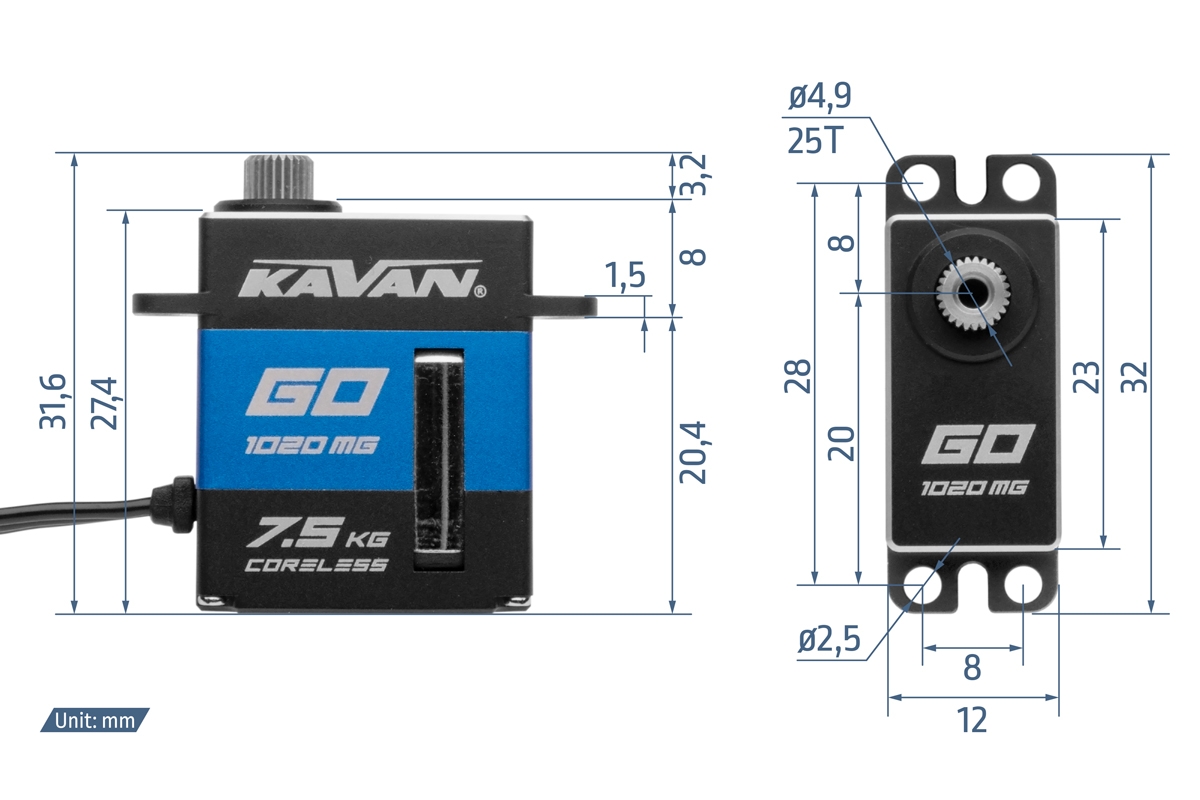 Starkes und schnelles programmierbares digitales Mikroservo mit Metall-Getriebe und zweifach kugelgelagerter Abtriebswelle ist bestimmt für den Einsatz in RC-Modellen aller Art. Dank dem flachen Gehäuse mit einer Höhe von 12 mm eignet es sich besonders für die Steuerung von Querrudern und Klappen bei RC-Segelflugmodellen mit dünneren Flügelprofilen. Das Servo ist in einem Aluminiumgehäuse platziert, das eine perfekte Kühlung auch bei hoher Belastung gewährleistet.