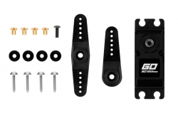 Standard waterproof digital servo with titanium gear and double BB-ed output shaft for general use in all kind of RC models – great for larger model planes, 1:10 RC cars, boats etc. A waterproof/dustproof (IP67 standard) plastic case with middle aluminium heatsink for perfect cooling under high load and thorough protection.