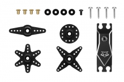 High torque and super high speed programmable digital mini servo with a coreless motor, titanium gear and double BB-ed output shaft for ailerons and flaps of gliders and hotliners. etc. All-aluminium servo case for perfect cooling under high load.