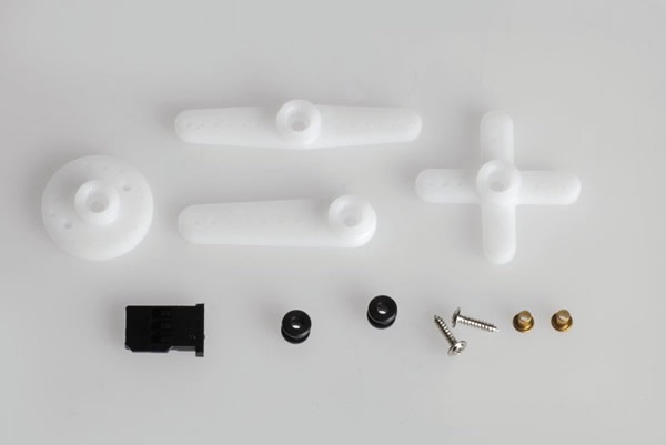 Original Zubehörbeutel mit verschiedenen Servoarmen und Montageteilen (so wie im Lieferumfang des Servos).