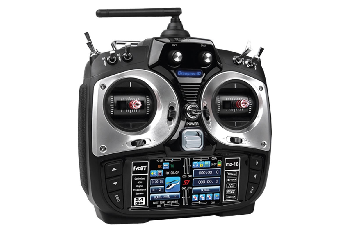 Die Graupner Fernsteuerung mz-18 mit 9 Kanälen ist der perfekte Sender für nahezu alle Flugmodelle. Der Sender eignet sich besonders für fortgeschrittene RC-Piloten. Die bewährte Graupner 2,4 GHz HoTT-Technologie garantiert störungs- und verzögerungsfreie Übertragung, auch über hohe Reichweiten. Die Graupner mz-18 verfügt über ein 3,5 TFT Farb-Touch-Display. Empfangene Telemetrie-Daten können so übersichtlich abgelesen und Programmierungen direkt am Sender vorgenommen werden. Als zusätzliche Sicherheit verfügt die mz-18 über eine intelligente Sprachausgabe – über Lautsprecher oder Kopfhörer. Diese gibt Telemetriedaten, Warnungen, Alarme und Vario-Signale durch.