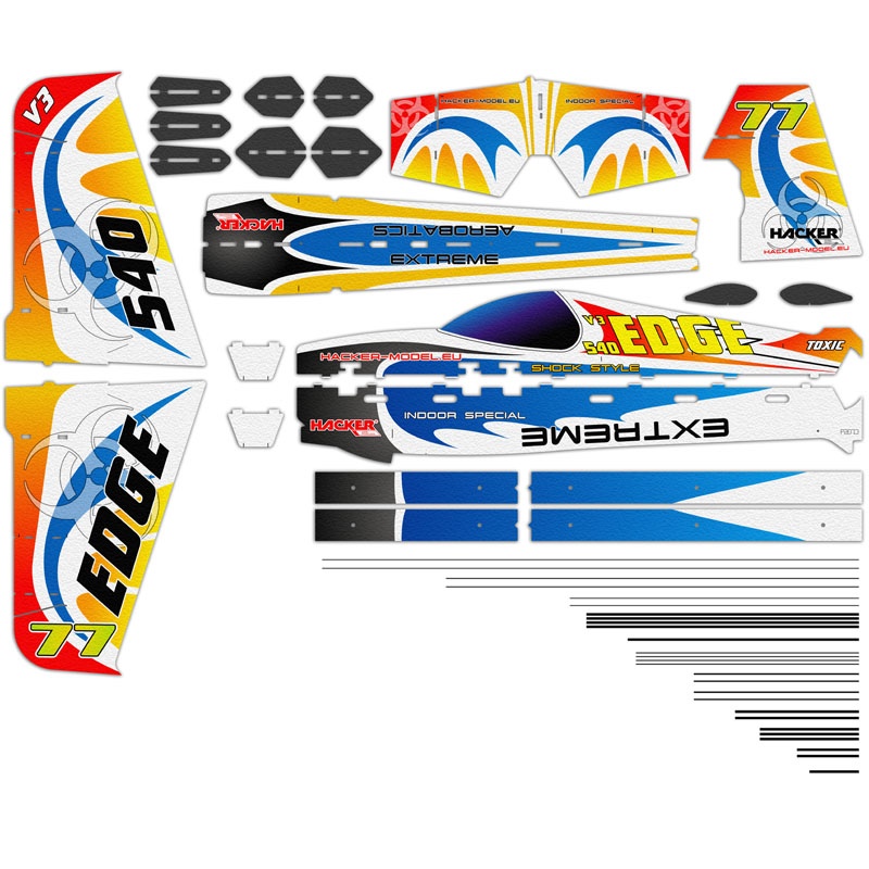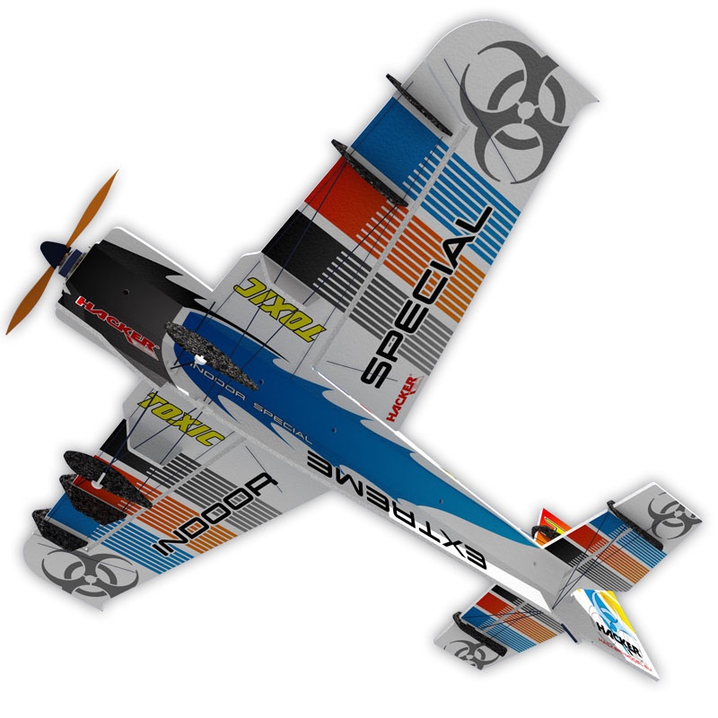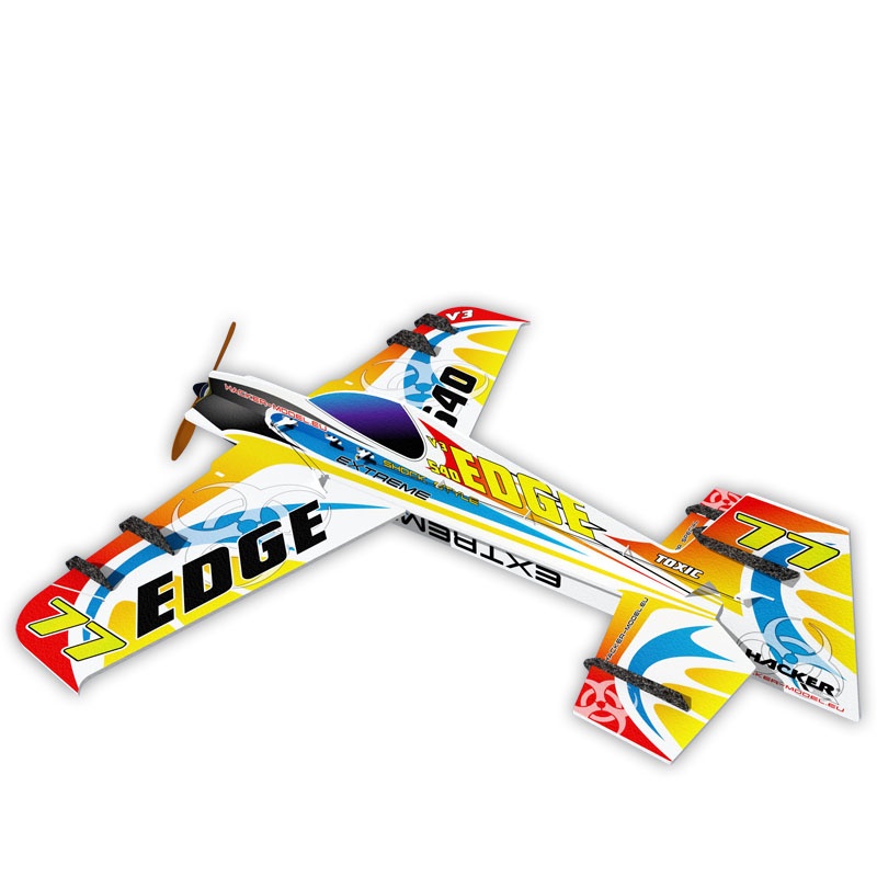 Die Edge 540 V3 Toxic von HACKER ist ein Slowflyer mit 81cm Spannweite, der gerade im Indoorbetrieb oder bei wenig Wind seine volle Klasse entfaltet. Das Modell lässt sich dank seiner extrem leichten EPP/Carbon Bauweise enorm langsam durch jede erdenkliche Figur manövrieren lässt.