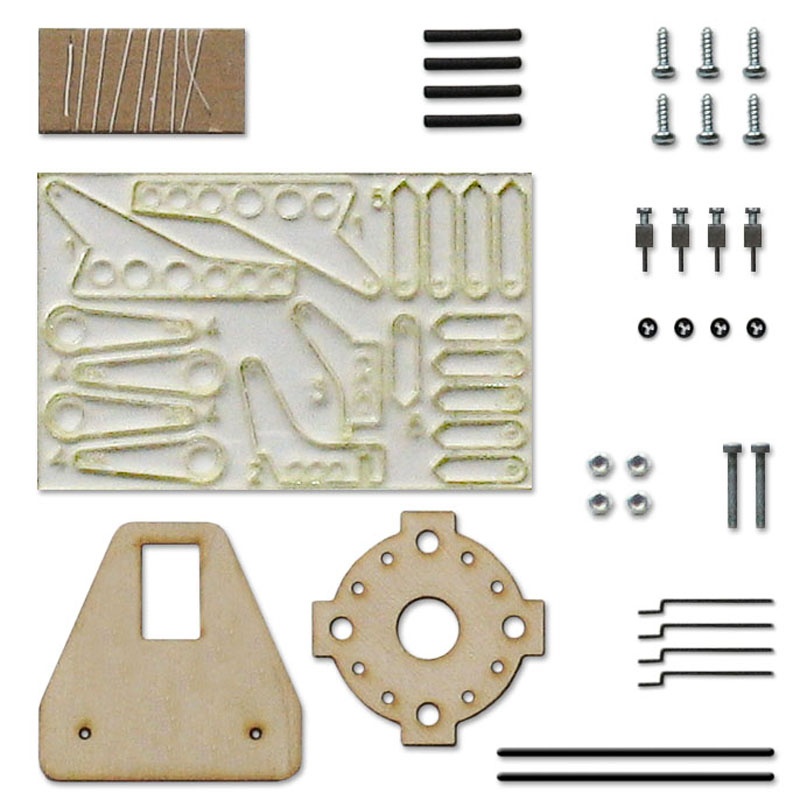 Das Modell verfügt über einen sehr hohen Vorfertigungsgrad. Alle CNC-gefrästen Elemente sind vollständig lackiert/bedruckt. Alle zum Bau erforderlichen Komponenten Motorhalter, Kunststoffteile, Fahrwerk und alle Anlenkungen sind im Lieferumfang enthalten. Zusätzlich werden lediglich die elektronischen Komponenten benötigt.