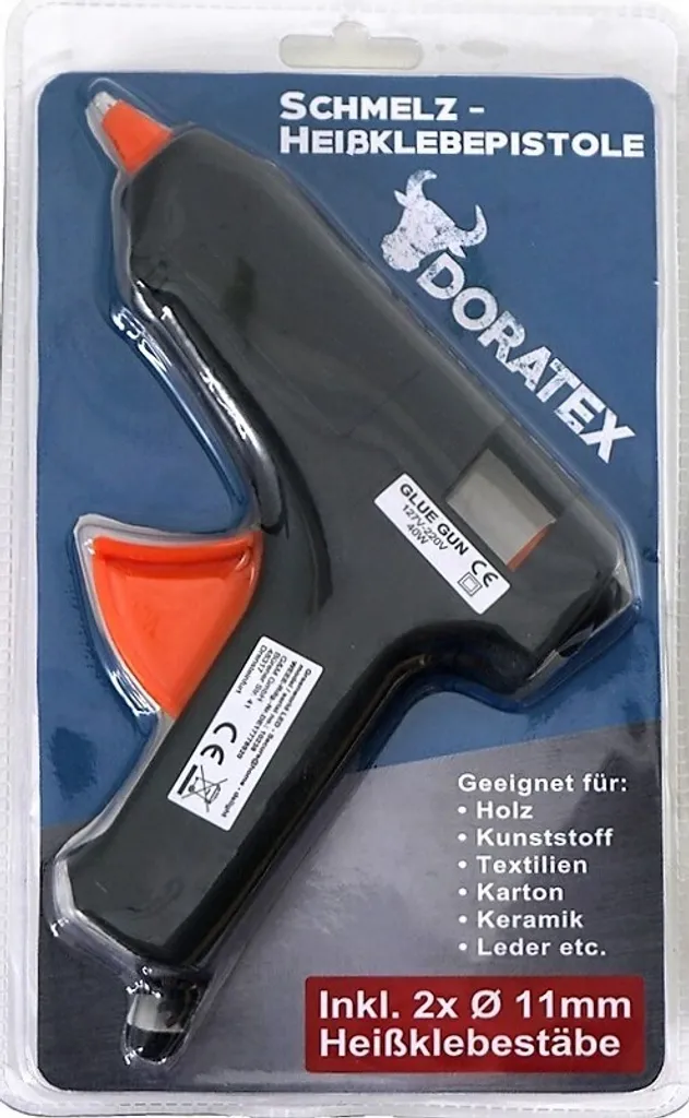 Heißklebepistole 40W, 170-190°C, 127-220V, 2 Klebepatronen Ø ca. 11 mm , 10 cm lang, isolierte Klebedüse, Kabel ca. 100 cm