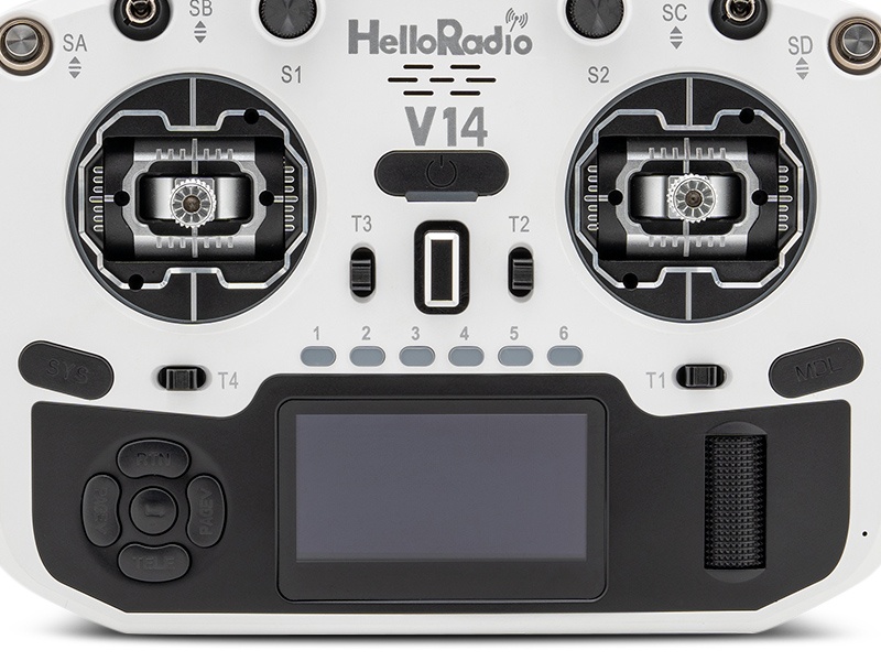 Die V14 MAX wird mit einem internen 4N1 HF-Modul angeboten. Das 4N1 Multiprotokoll Funksystem beinhaltet die HF-Chips NRF24L01, CC2500, A7105 und CYRF6936. Es ist kompatibel mit HoTT, Futaba SFHSS, FrSky, DSM/DSMX, Walkera Devo, FlySky, AFHDS2A, Hubsan, HiSky, Syma und ASSAN Protokollen.