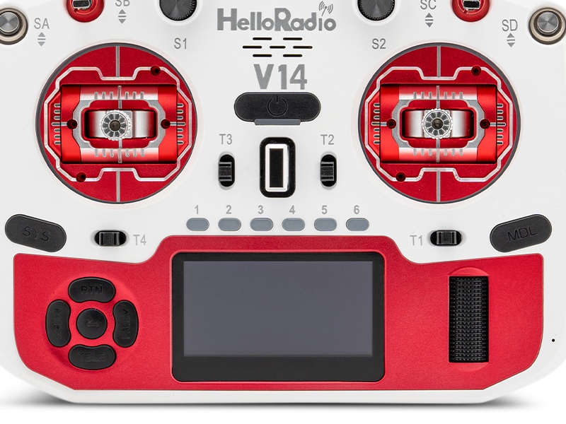 Die HelloRadio V14 MAX Fernsteuerung vereint modernste Technologie mit durchdachtem Design und bietet dir volle Kontrolle. Ausgestattet mit dem Open-Source-System EdgeTX, einem OLED Display und einem innovativen KI-Sprachassistenten, eröffnet sie völlig neue Möglichkeiten. Intelligente Sicherheitsfunktionen, flexible Modulkompatibilität und eine präzise Bewegungssteuerung sorgen dafür, dass du jederzeit die volle Kontrolle behältst. Als weiteres Highlight lassen sich die LEDs um die Gimbals in verschiedensten Farben programmieren