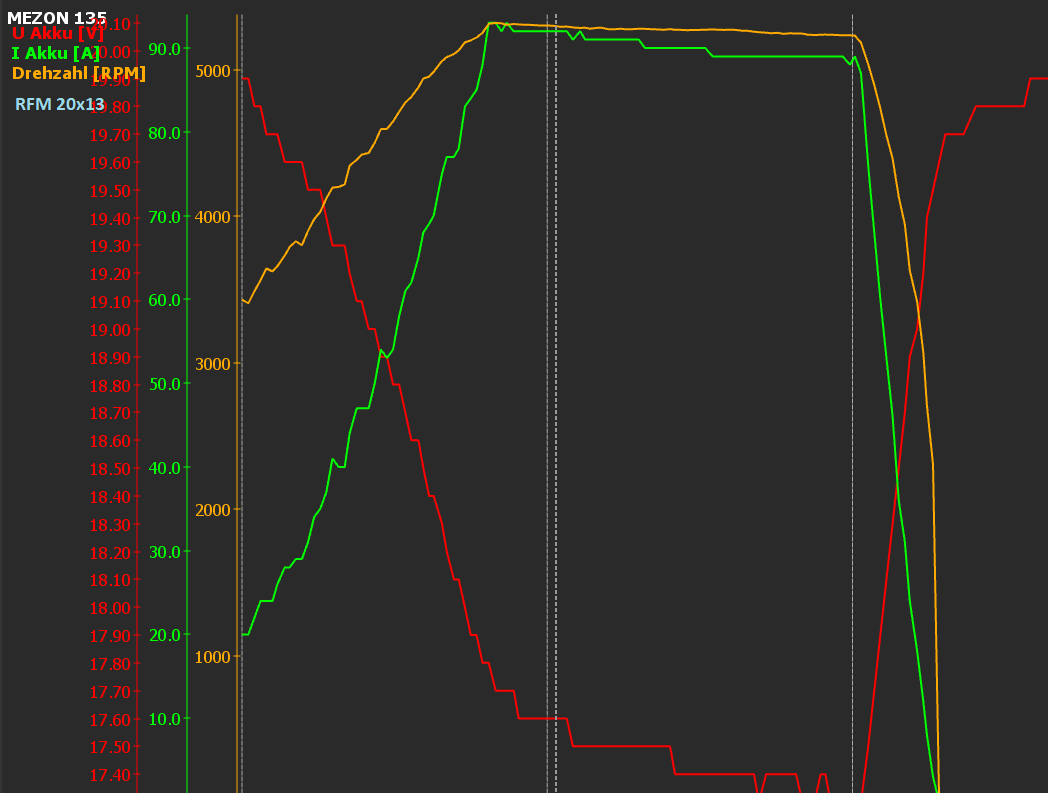 | Lipo Zellenzahl | Klapp Propeller | Strom ~A | Leistung ~W |