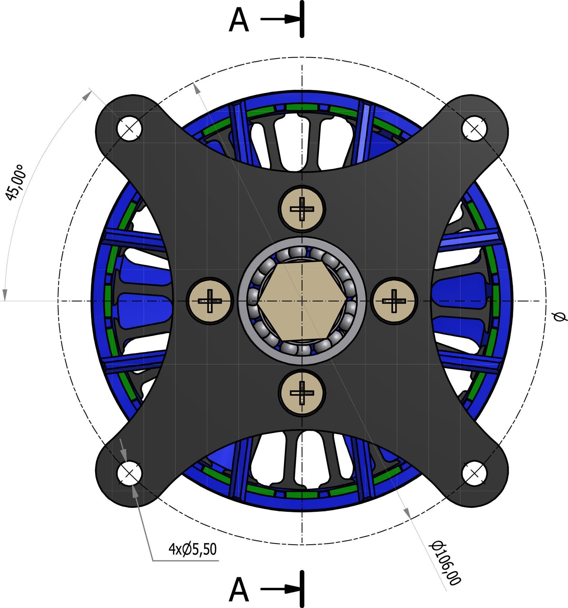 und/oder 4 Schrauben M5 im Lochkreis 30mm