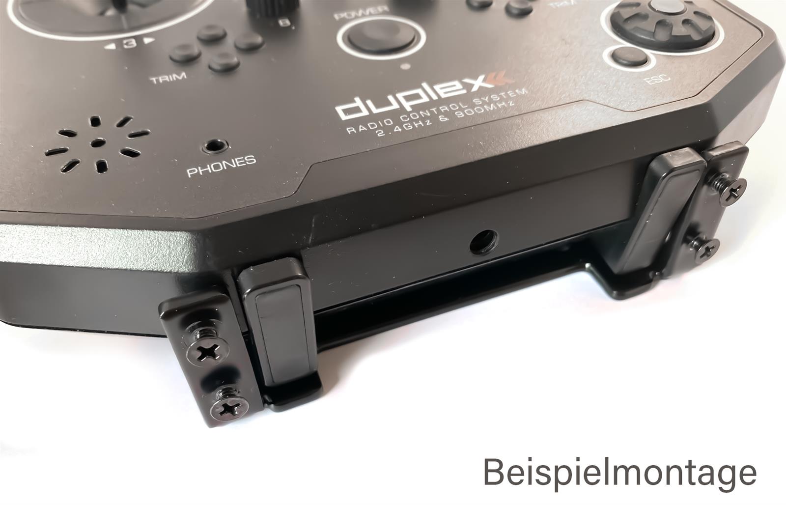 Dazu benötigt werden die Jeti Sender Haltebügel JMS-DC-B
