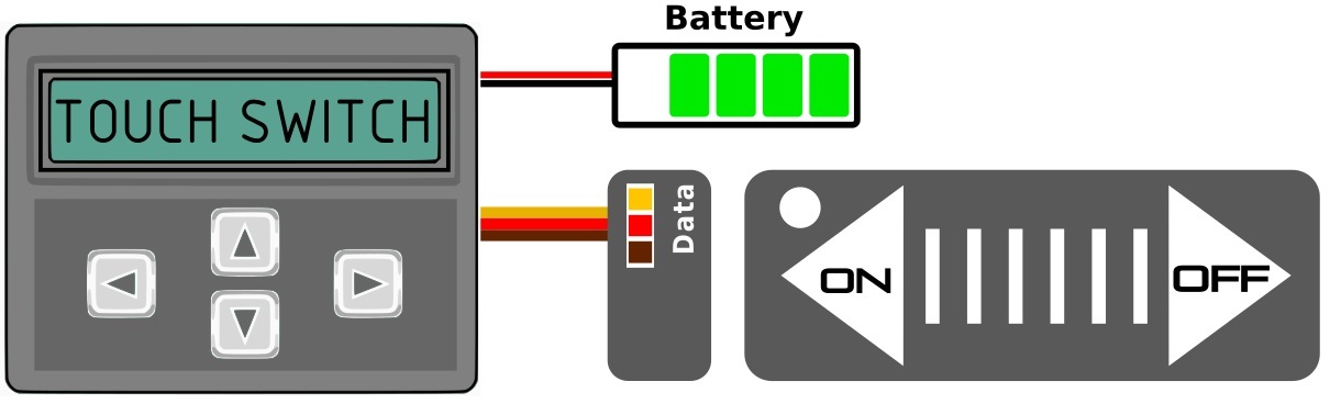 Die Status LED sollte jedenfalls auch ausserhalb des Rumpfes gesehen werden, und montieren Sie den “Touch Swipe” Sticker. Schliessen Sie die Stromversorgung am HEPF Touch Power Switch an und berühren Sie den Sensor bei der “OFF” Position. Die Status LED sollte langsam blinken, wenn nicht, stellen Sie die Empfindlichkeit in der Konfiguration auf einen höheren Wert.