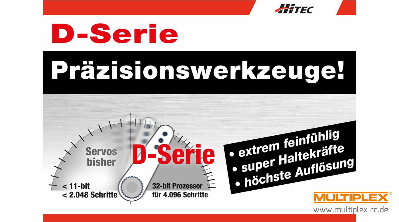 Das ultra starke D980TW Servos der HITEC D-Serie bieten die derzeit höchste am Markt erhältliche Auflösung der Servowege. Feinstes Ansprechverhalten und Programmiermöglichkeiten werden dank 32-bit MCU und 12-bit ADC Technologie realisiert.