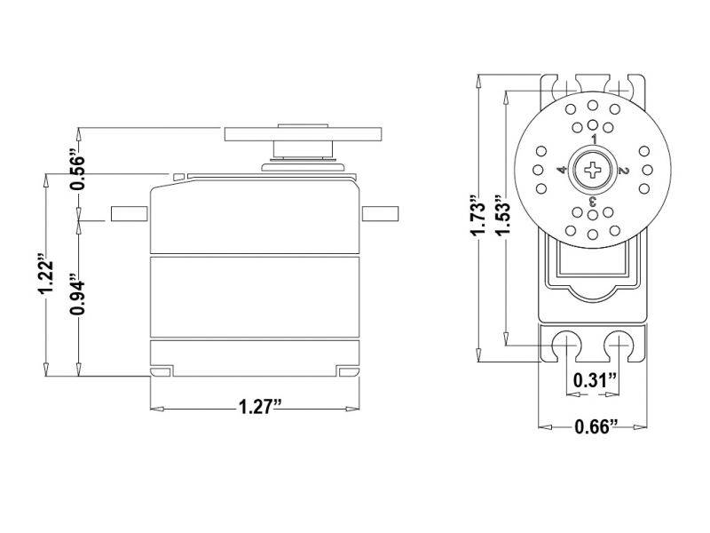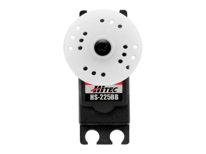 Wenn trotz geringem Gewicht und kleinen Abmessungen viel Drehmoment und hohe Geschwindigkeit gefordert sind, ist das HS-225, ob mit Kunststoff- oder Metallgetriebe, erste Wahl. Kugelgelagerter Abtrieb