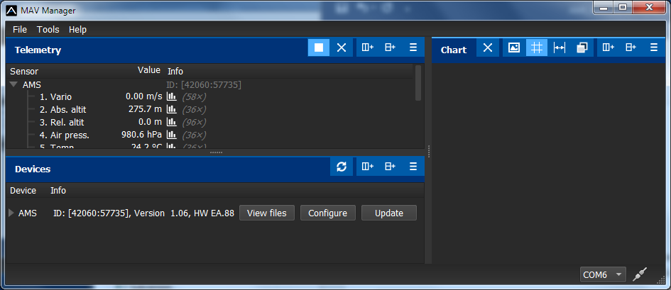 - Altitude is stored in 1s interval with resolution 0.1. The device is able to store up to 16minutes of flight data, which can be later displayed on JETIBOX, SMART BOX or MAV Manager PC software version 1.1.0 or newer.