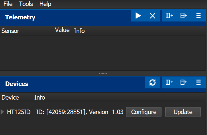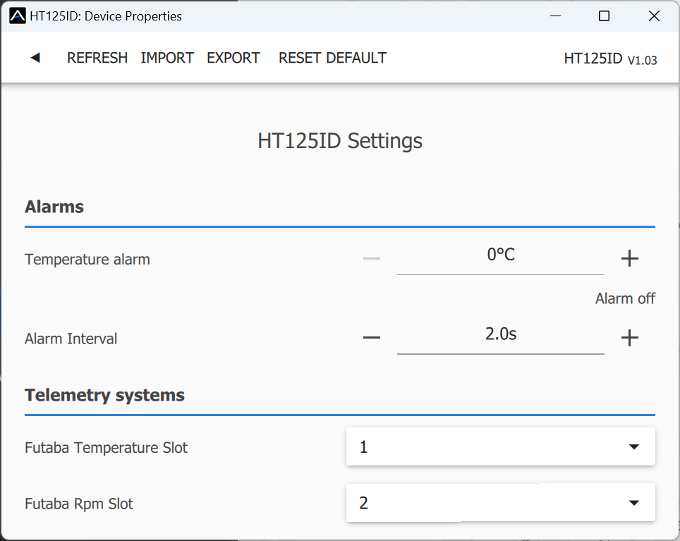 Wählen Sie nach dem Ändern der Steckplatznummer den Sensortyp „T125“ auf der aus entsprechenden Steckplatz in Ihrem Futaba-Sender - PC-Konfigurationsunterstützung mit der MAV Manager-Software wurde implementiert. Verwenden Sie MAV Manager-Version 1.6.0 oder höher