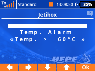 Das Gerät ist zur Programmierung mit der JETIBOX kompatibel. Das JETIBOX-Menü ist in drei Bereiche unterteilt: