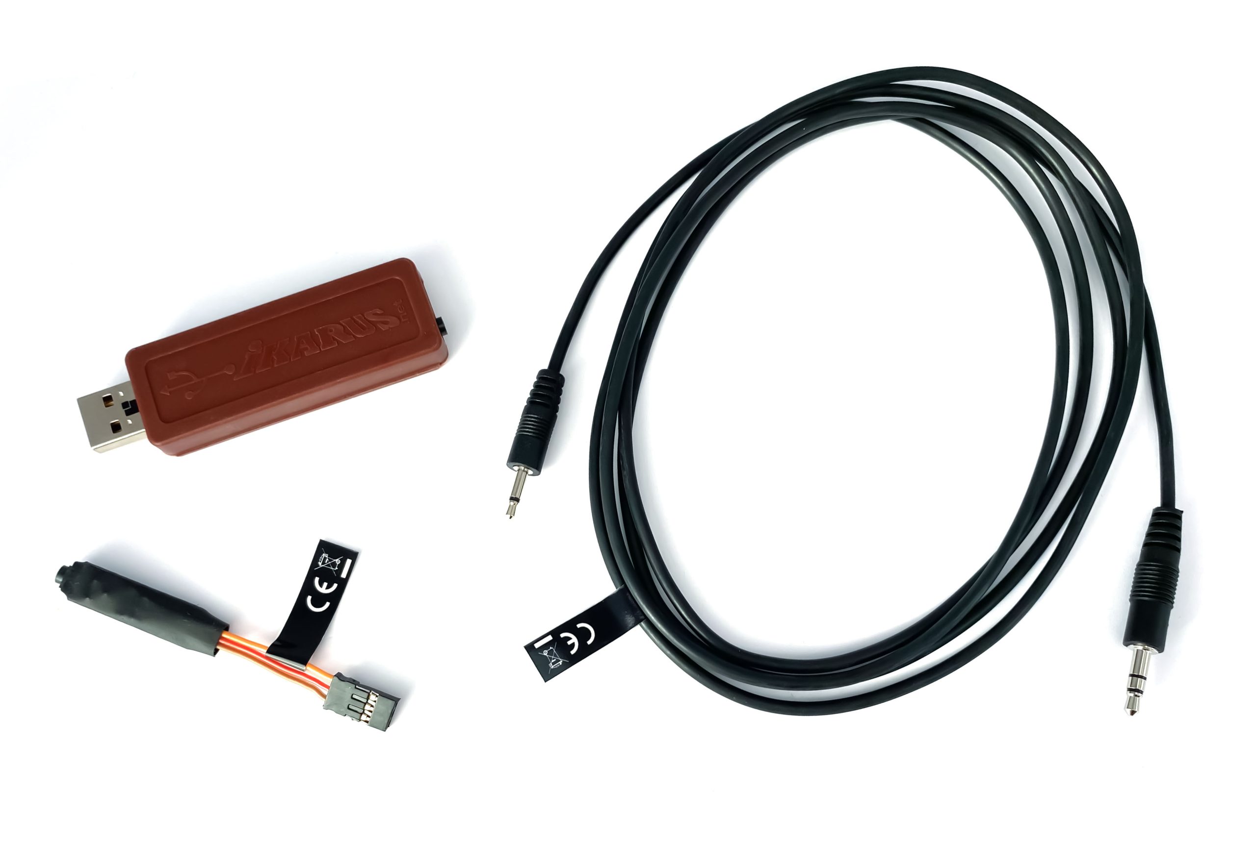Das USB-Interface wird standardmäßig mit einem Kabel und 3,5-mm Klinkenstecker für den Anschluss an einen RC-Sender ausgeliefert. In Abhängigkeit des RC-Senders wird gegebenenfalls die Verwendung eines separaten Adapters erforderlich. Bitte beachten Sie dazu die Hinweise bei den Adaptern mit der Art.Nr. #31036 oder #31047 .